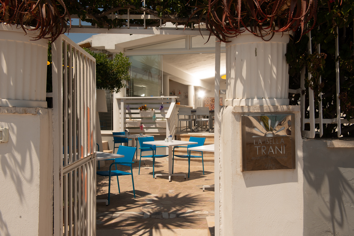 La Bella Trani nasce nell’estate del 2014. Situata in una posizione unica e strategica, dinanzi ad una deliziosa insenatura di sabbia, sulla penisoletta della baia dei pescatori, all’ombra del celebre Monastero di Santa Maria di Colonna. Il centro della città di Trani con le sue maggiori attrattive dista solo 2 km, ma è facilmente raggiungibile con una comoda passeggiata panoramica a piedi o in bici percorrendo la pista ciclabile su tutto il Lungomare. La Bella Trani accoglie i suoi Ospiti in un ambiente moderno, giovane e dinamico, adatto a chi si trova a Trani per turismo o per lavoro. Un’ampia veranda, con una vista affascinante sul mare, accoglie gli ospiti sin dalle prime ore della giornata per gustare una ricca colazione.