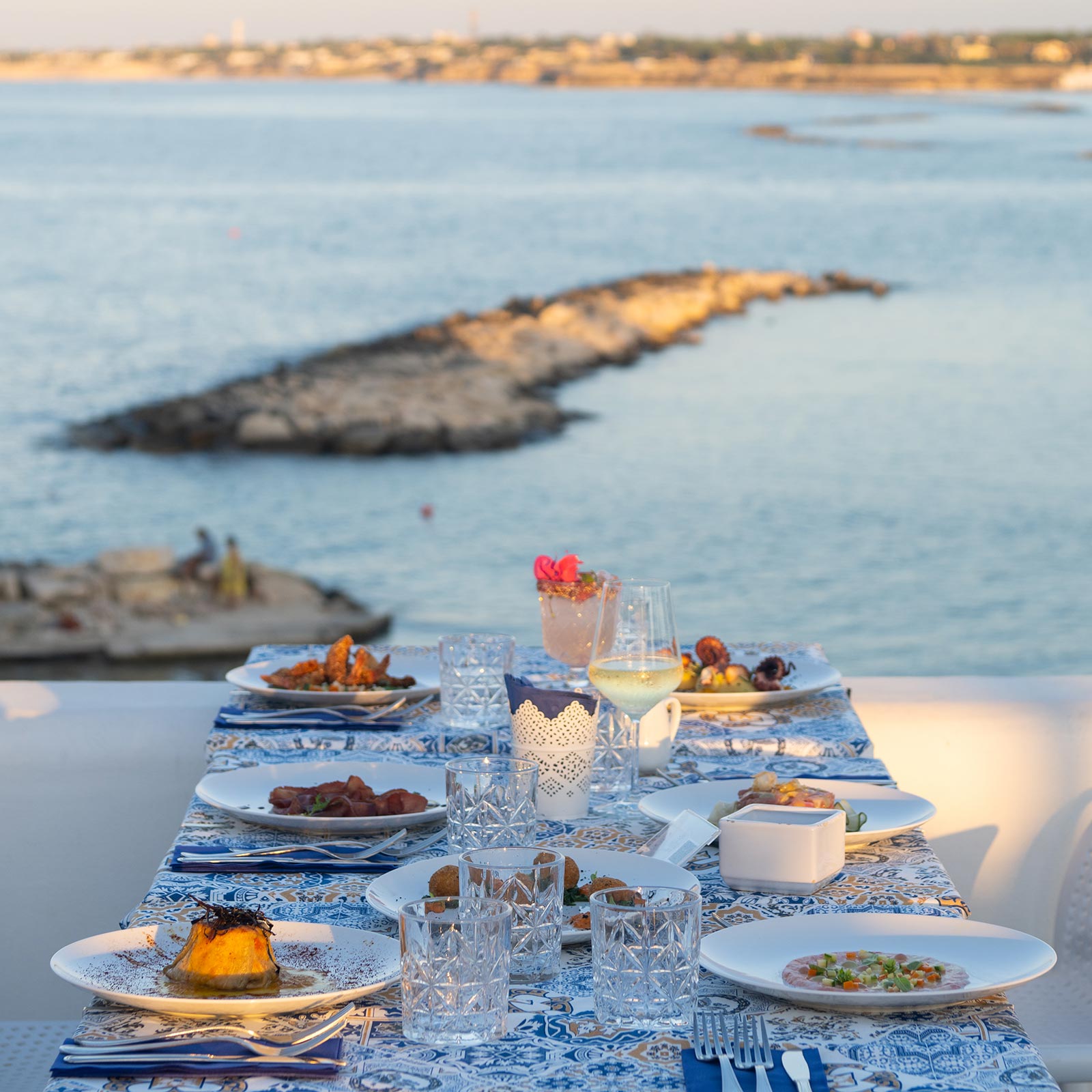 Trascorri il pomeriggio godendoti un aperitivo sulla nostra terrazza panoramica, dove potrai sorseggiare cocktail artigianali e stuzzicare deliziosi antipasti mentre ammiri il tramonto sul mare.